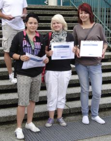 Schülerinnen Janine Geike und Laura Walter sowie der Schüler Florian