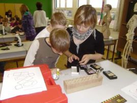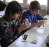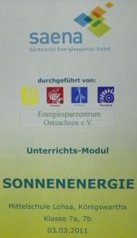 | Am Donnerstag haben die Schüler der Klassenstufe 7 theoretische Grundlagen zur Sonnenenergie vermittelt bekommen. Der anschließende praktische Teil war natürlich besonders interessant. Es wurde ausgeschnitten, gemalt, geklebt und gelötet. Die Ergebnisse waren überzeugend - durch Lichtenergie (künstliche und natürliche Lichtquellen) wurde ein kleiner elektrischer Motor zum Laufen gebracht! Physik zum Anfassen war toll! Ein ganz großes Dankeschön an Frau Winde und der SAENA GmbH. | ![]() |