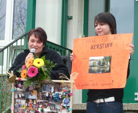 Wie schon vor längerer Zeit den Medien zu entnehmen war, erfolgen im Bereich der Schulsozialarbeit grundlegende Veränderungen. Die Folge davon ist, dass unsere Schulsozialarbeiterin Kerstin Röse am 15.11.2010 ihren letzten Arbeitstag an unserer Schule absolvierte und wir sie an diesem Tag leider verabschieden mussten. Kerstin Röse – eine uns vertraute Person, die uns im Schulleben tatkräftig unterstützte; uns immer mit Ratschlägen zur Seite stand und auch das kulturelle Leben der Schule mit gestaltete. Kerstin wir sagen DANKE für alles. Schade, dass du nicht bei uns bleiben kannst. Wir freuen uns mit dir, dass du eine neue Arbeitsstelle gefunden hast und wünschen dir und deiner Familie für die Zukunft alles Gute. Schüler und Lehrer der Mittelschule Lohsa |